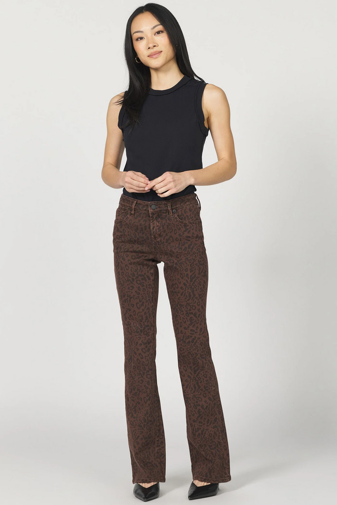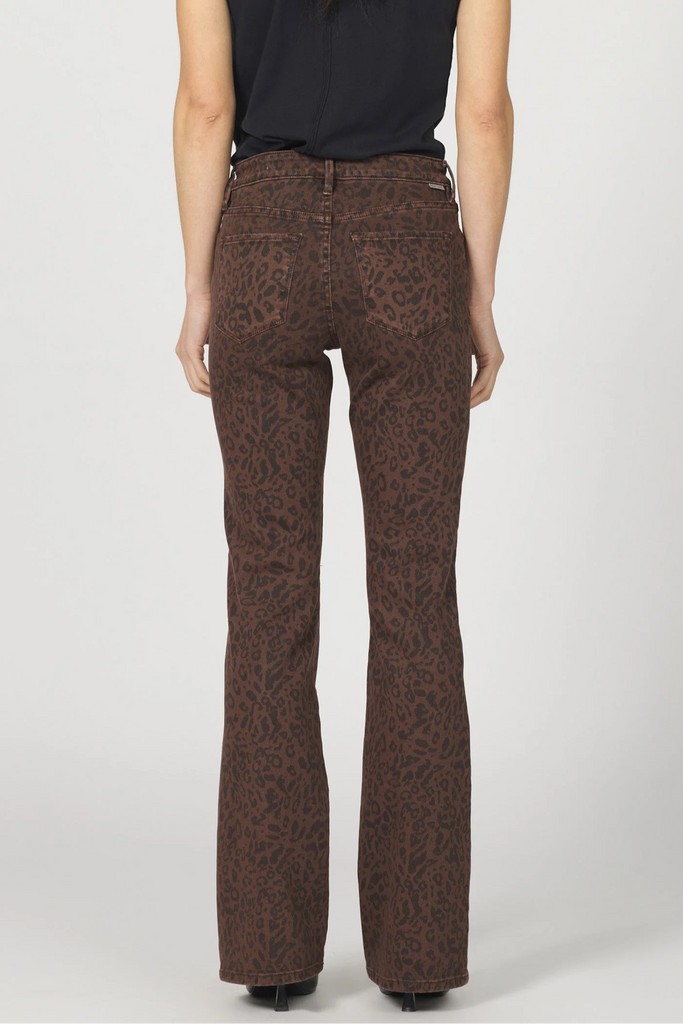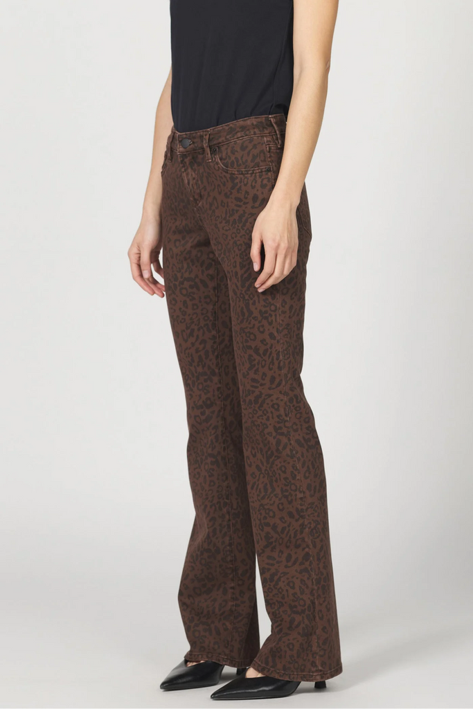 These pants offer a sleek look with their chic brown leopard pattern, effortlessly blending trendiness with practicality.