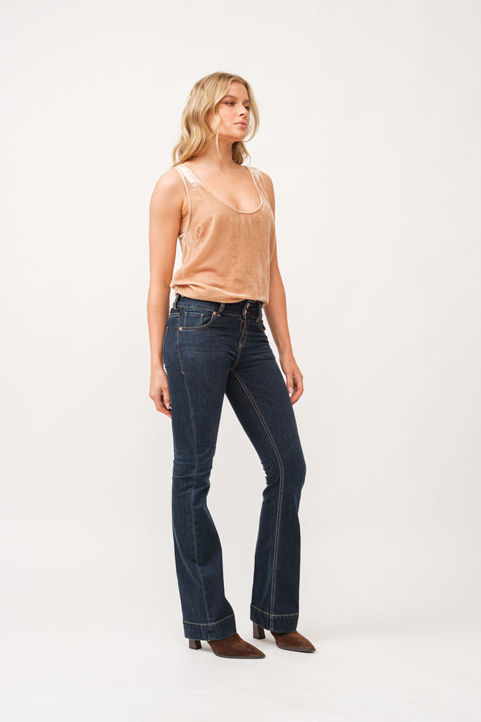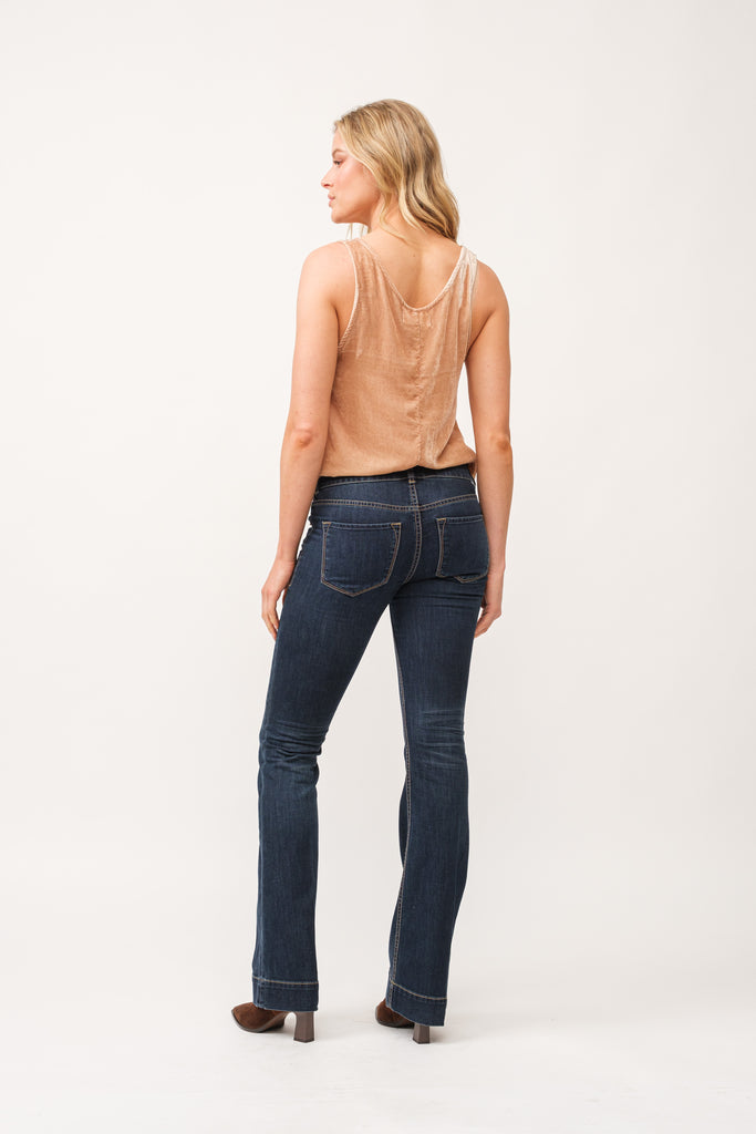 Bootcut Fit mid Rise Jean. Designed for a flattering silhouette, these jeans offer a comfortable fit that complements any style. The bootcut design provides a touch of flair while ensuring versatility, making them an essential addition to your wardrobe. Perfect for both casual outings and more polished looks, you'll love the way these jeans perform in your everyday life.