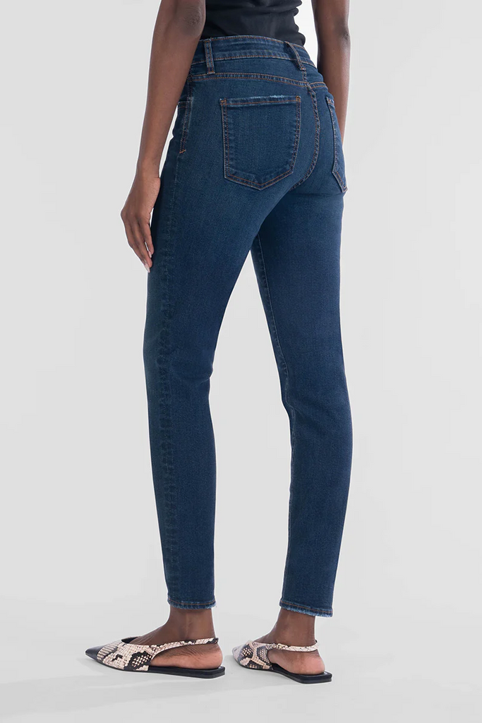 Fading and whiskering add easygoing style to mid-rise slim fit jeans cut from stretch denim in a mid rise fit.