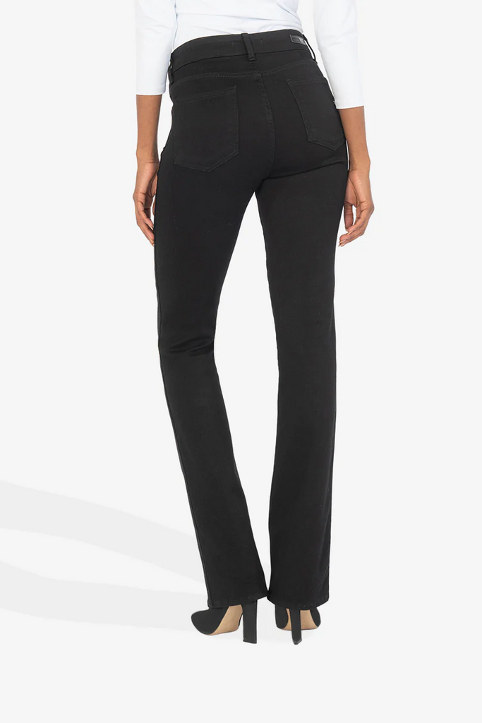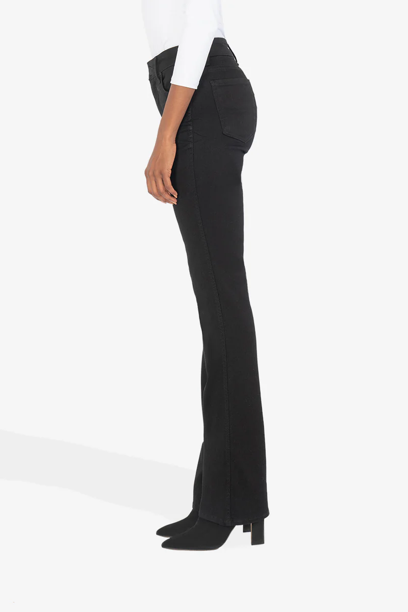 Designed with front pocket technique that is flattening, slenderizing and provides comfort. Elongate your legs with our Natalie bootcut jeans. Crafted in a sweet silhouette that will never go out of style, this pair is made up of our sleek black denim.