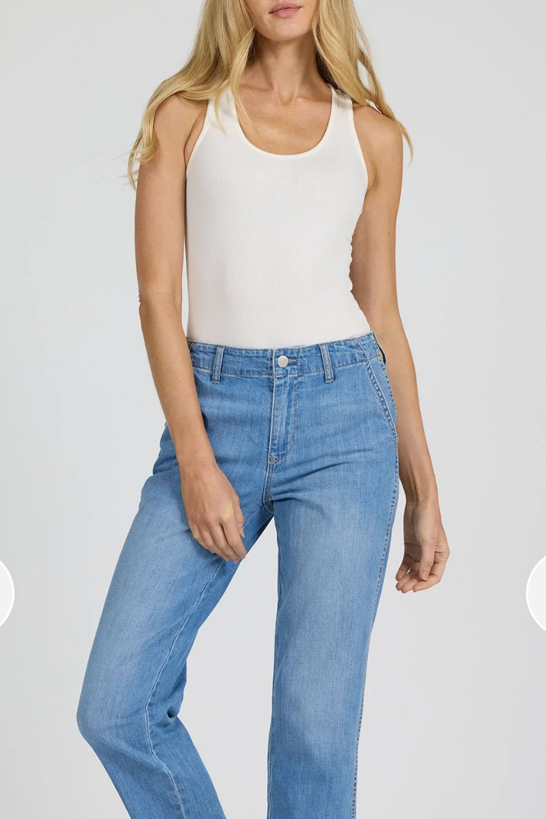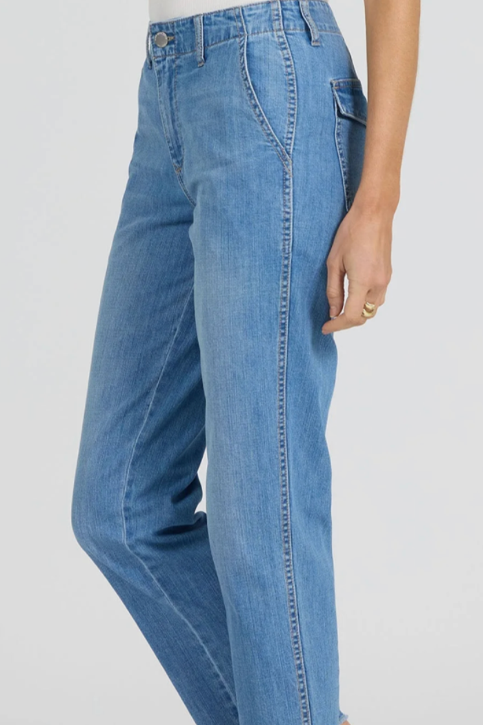 Embrace the versatility of relaxed fit bottoms that elevate any outfit with their medium wash hue and timeless appeal.