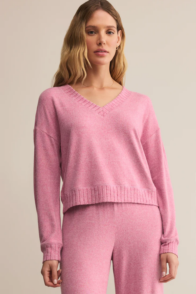Made in our brushed silky jersey, this v-neck long sleeve feels soft, lightweight, and instantly cozy against the skin. The relaxed fit gives it that easy, lounge-all-day vibe, whether you’re pairing it with denim for casual plans or slipping it into your weekend rotation at home.
