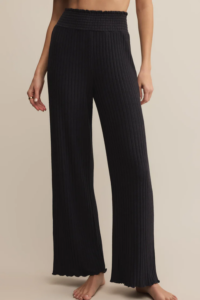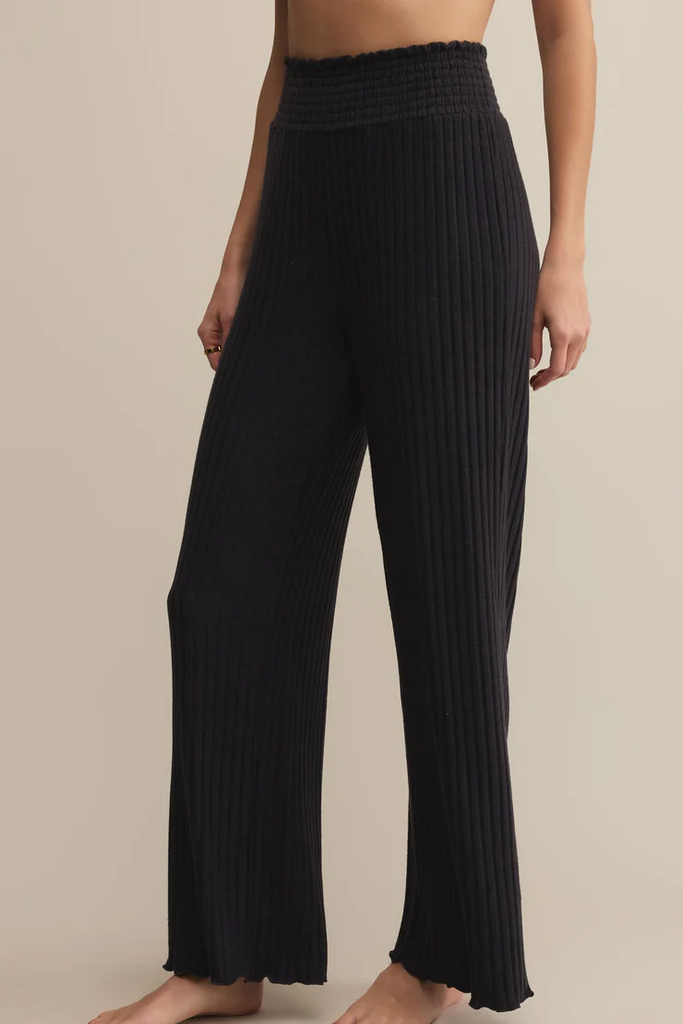 The Dawn Smocked Rib Pant is made using our ultra soft Silky Rib fabric. The smocked waistline plus the wide leg flare and easy fit make this pant perfect for relaxing all day.