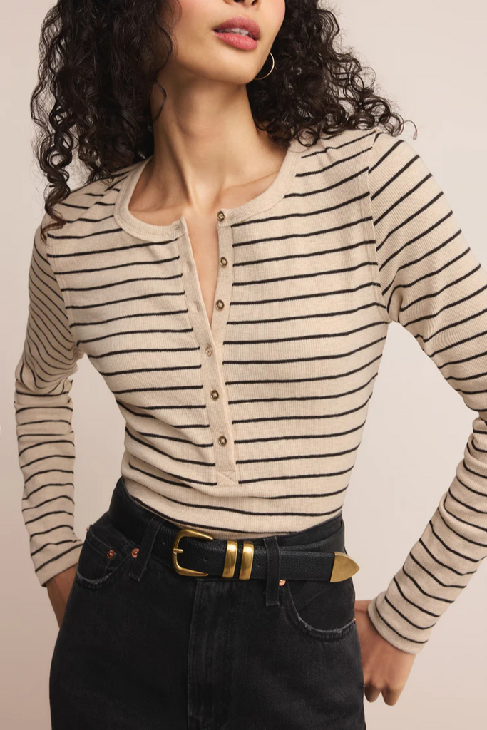Eve Stripe Henley Long Sleeve