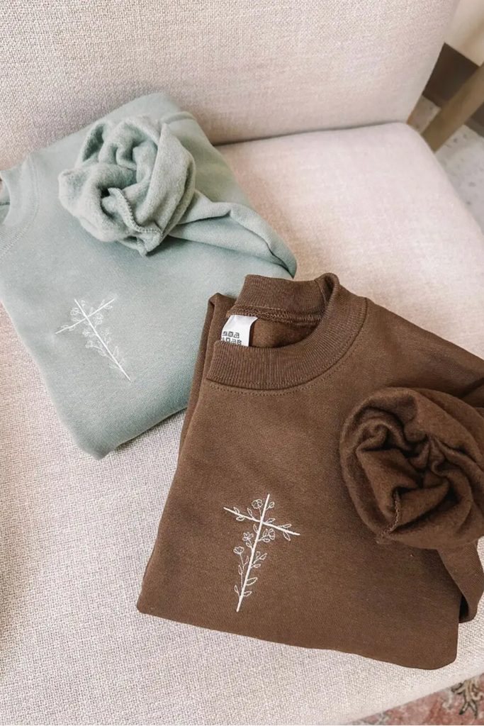 Cross Crewneck || Christian Sweatshirt || Faith Sweatshirt || Embroidered Cross Crewneck
