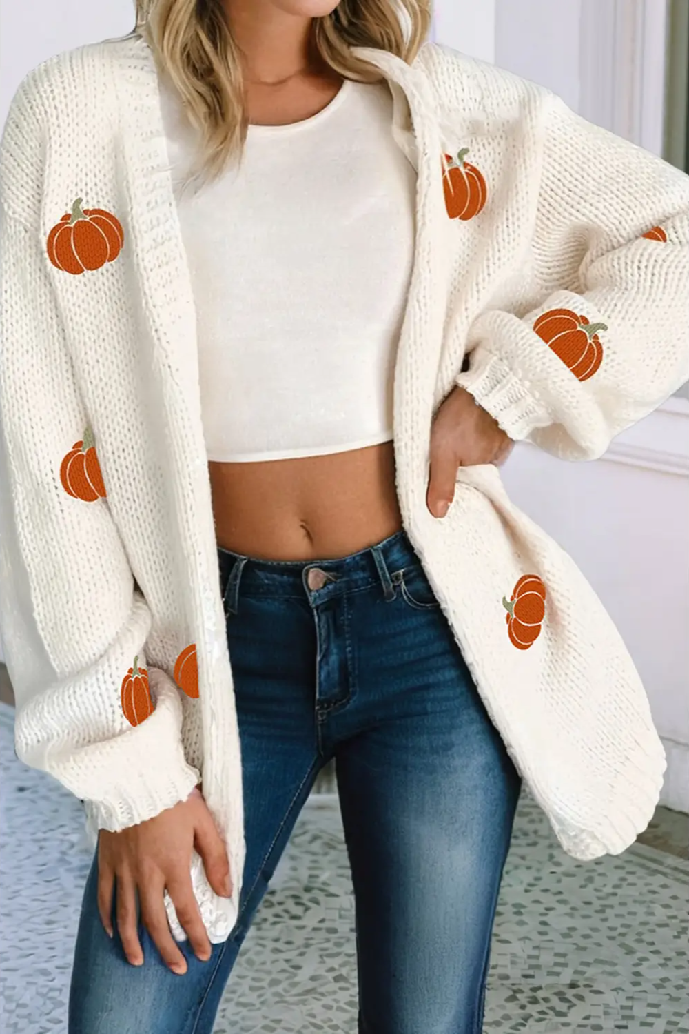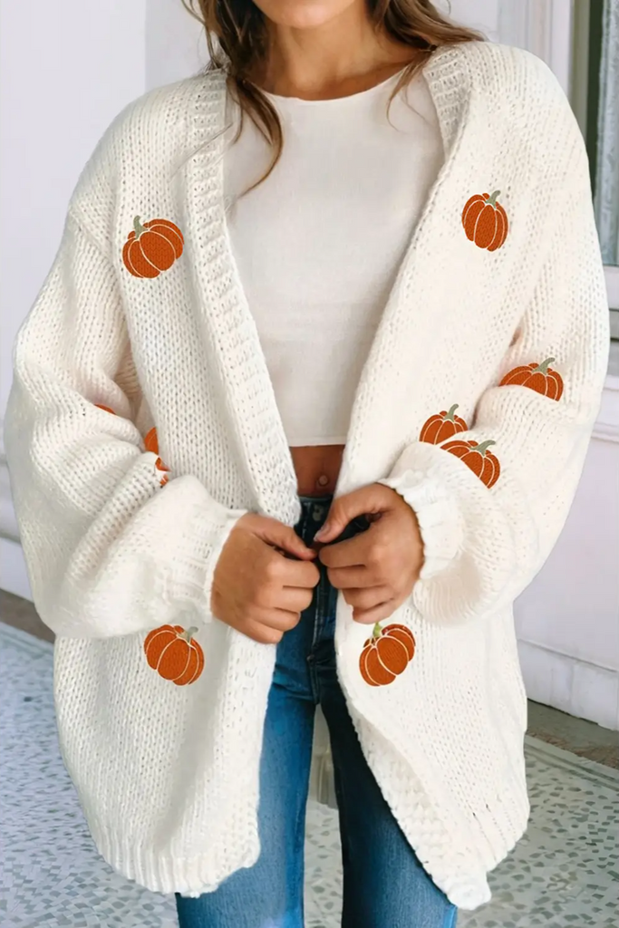 Pumpkin Open Front Drop Shoulder Sweater Cardigan|