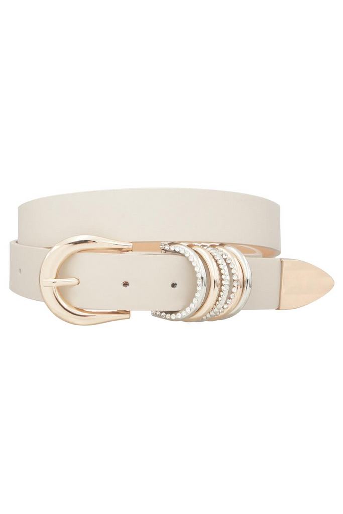 Stacked Mixed D Ring U Buckle Belt - Beige / One Size is backordered and will ship as soon as it is back in stock.