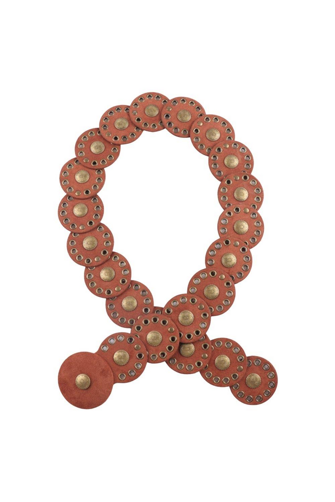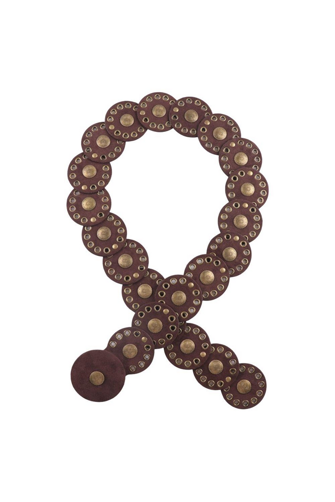 Suede Textured Metal Studded Eyelet Circle Link Western Belt
