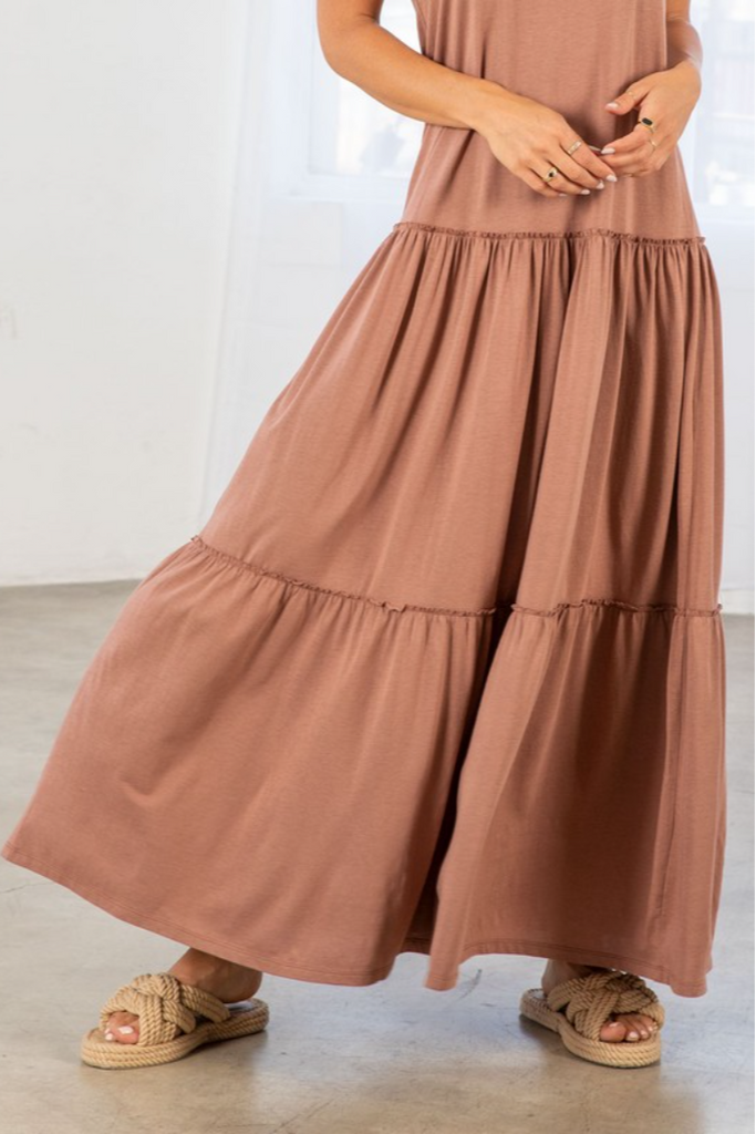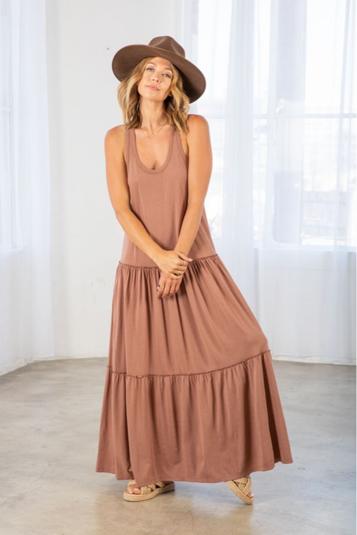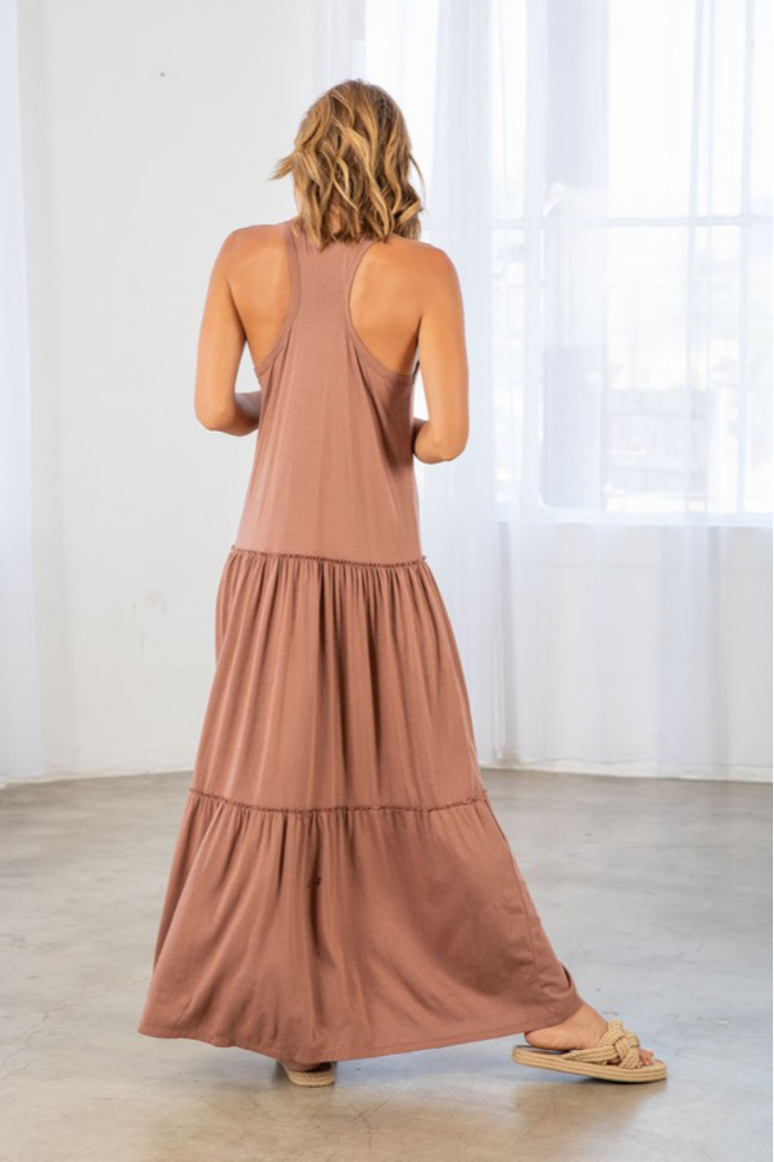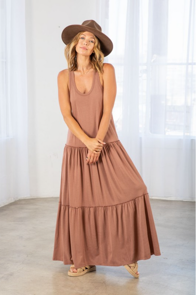 Bohemian Jersey Racer Back Tiered Maxi Dress
