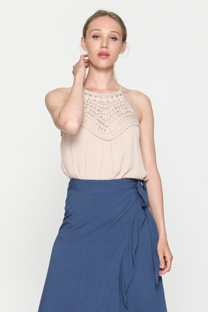 FRONT LACE DEATILED HALTHER NECK CAMI TOP.