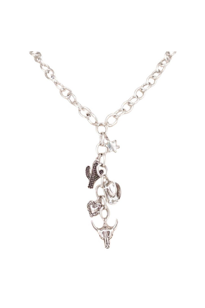 Cattle Skull Western Charm Y Shape Metal Necklace