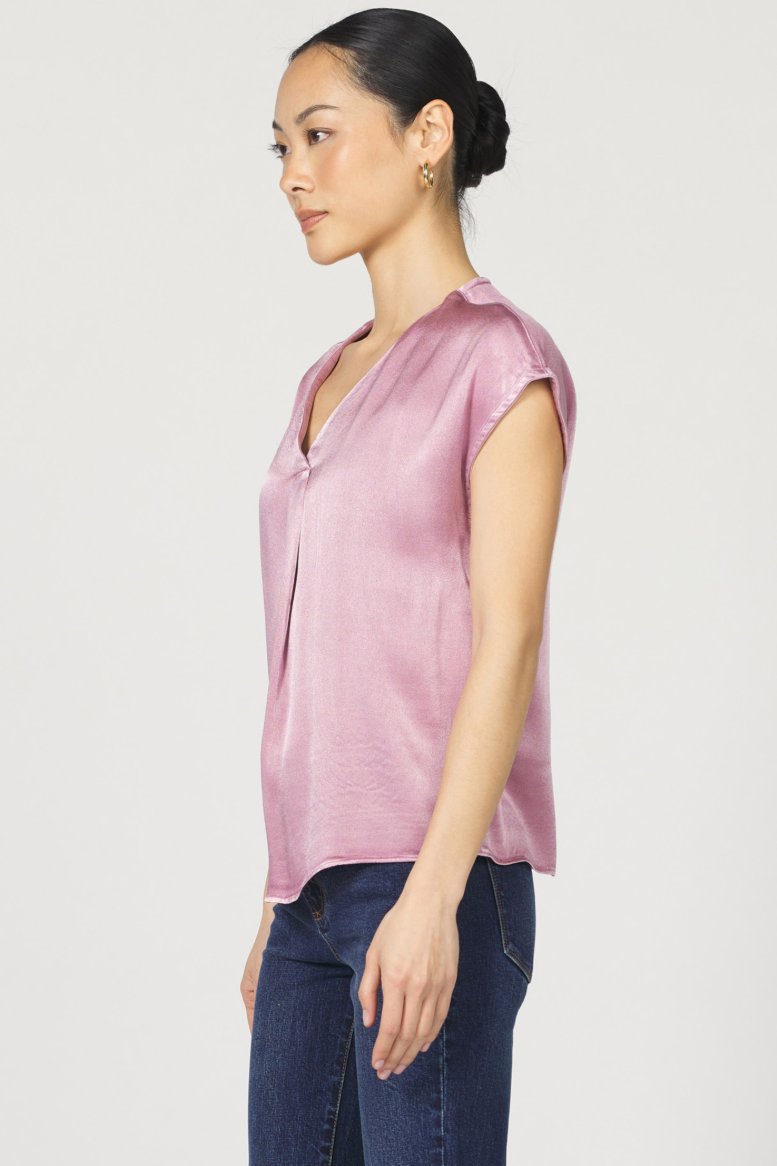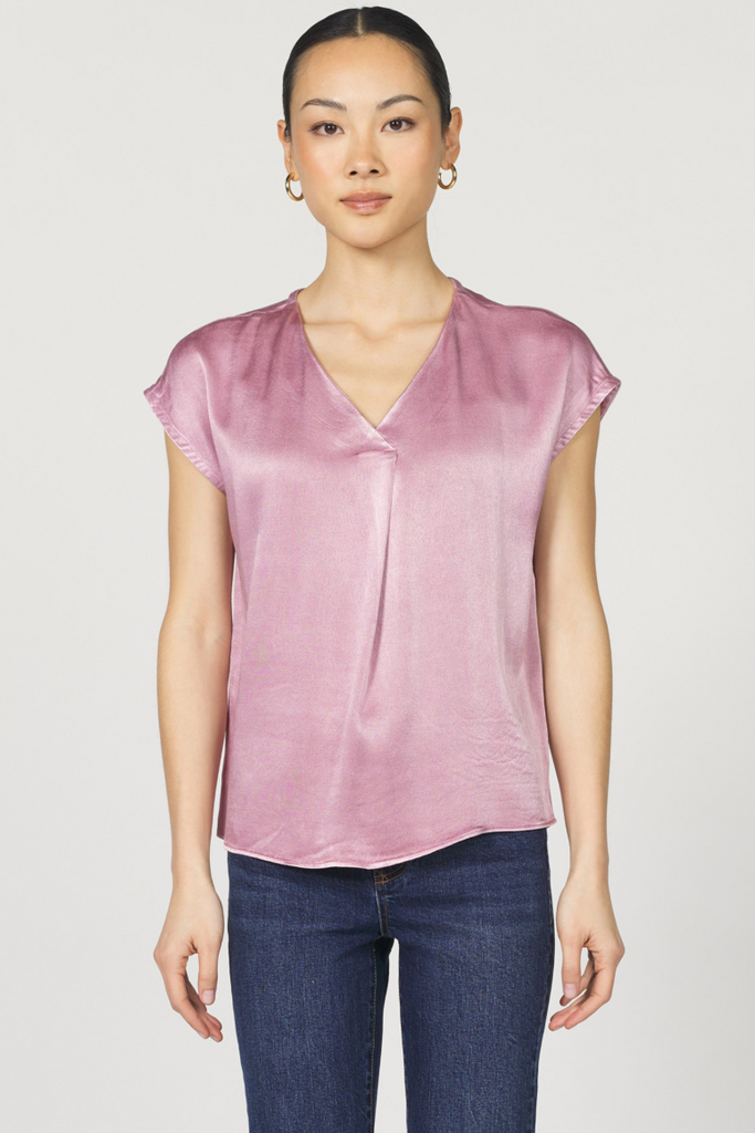 Shine through the season in effortless elegance Our satin V-neck short sleeve blouse is the perfect mix of timeless chic and modern polish. With its soft sheen and flattering drape, this top easily transitions from daytime gatherings to holiday soirées. Pair it with tailored trousers for a sleek office look, or dress it up with a skirt and heels for festive nights out. A wardrobe must-have for fall and the holiday season ahead!