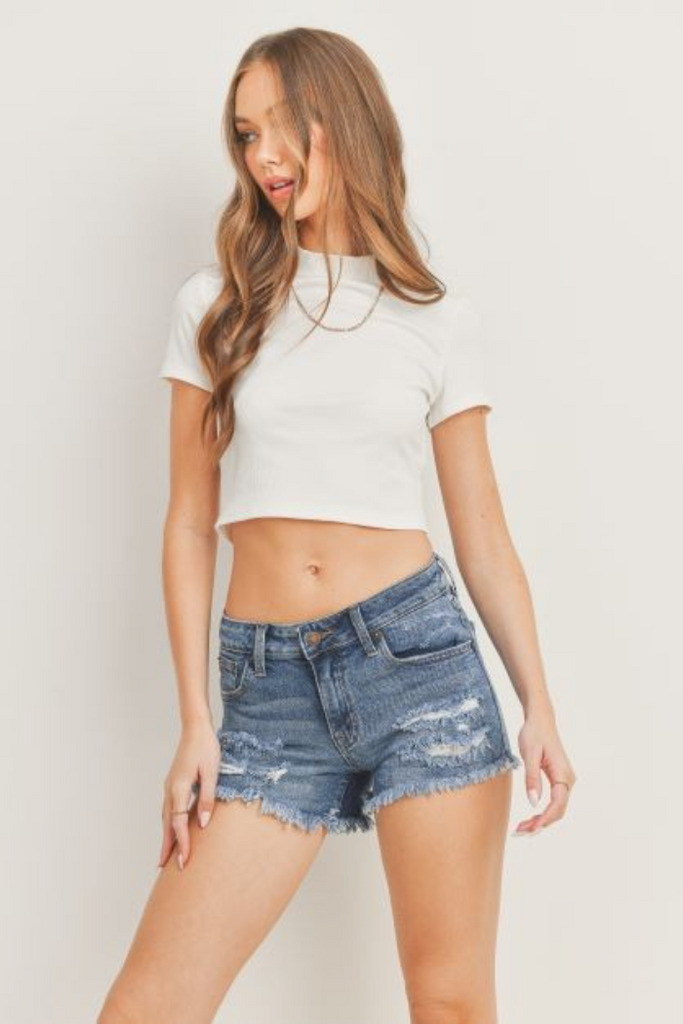 Get the low rise look of the summer in this classic cutoff. Featuring a medium rinse, light distressing, and light, good vibes. In a medium denim.