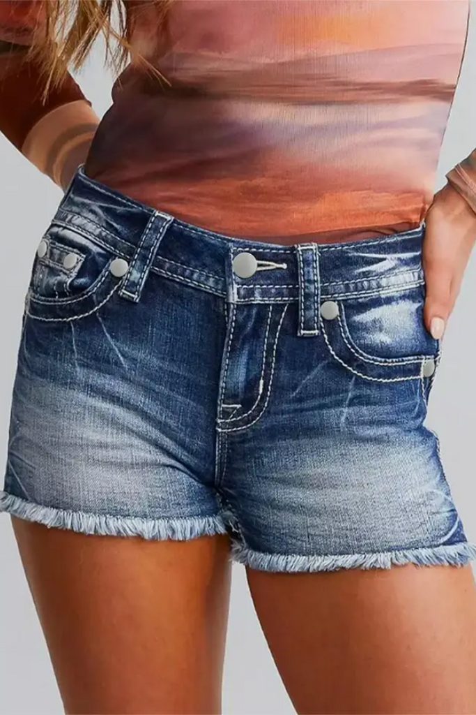 Meet your new summer staple: the Lucky Break Shorts. These high-rise denim cutoffs bring a playful twist with embroidered horseshoes on the back pockets—your daily dose of charm and good vibes. With a flattering fit, raw-edge hem, and vintage wash, they’re perfect for everything from weekend road trips to music festivals under the sun. Pair 'em with your favorite tee or a flirty crop and let the good luck roll.