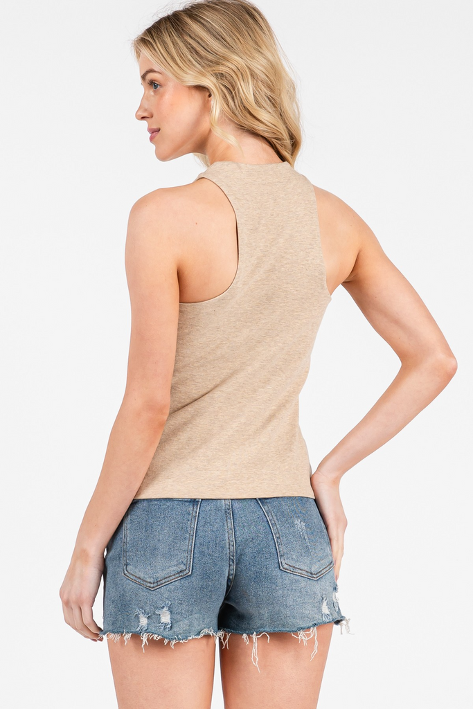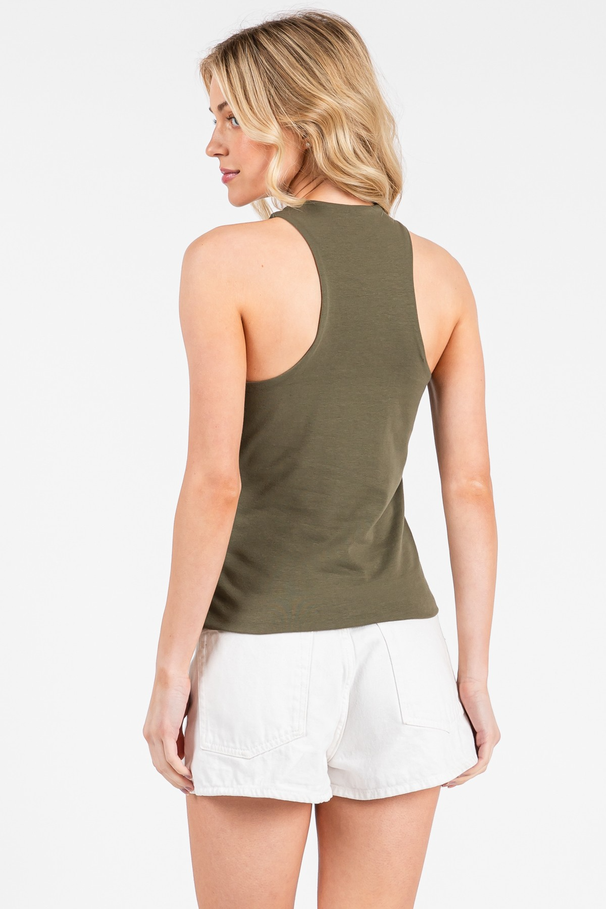 COTTON SPAN DOUBLE LAYER RACER BACK SLEEVELESS TOP.